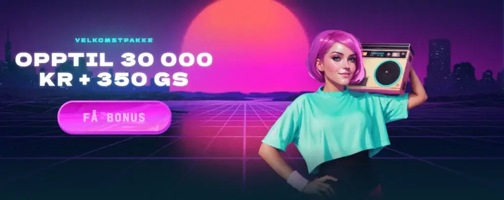 Velkomstpakken på casino er no-sticky og fordelt over fire innskudd: totalt opptil 30.000 kr i bonuspenger og 350 gratisspinn, med 150% opptil 10.000 kr på første innskudd. I tillegg finnes en egen krypto-pakke (opptil 100 mBTC + 100 gratisspinn) og en oddsbonus på 100% opptil 2000 kr.