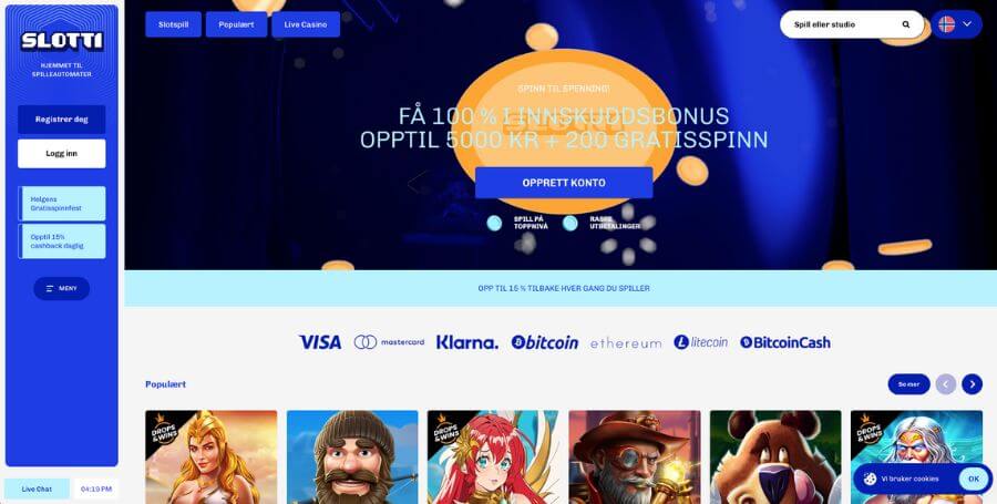 Slotti er et nettcasino som er åpent for norske spillere. Det er en norsk nettside, og du kan spille med norske kroner.