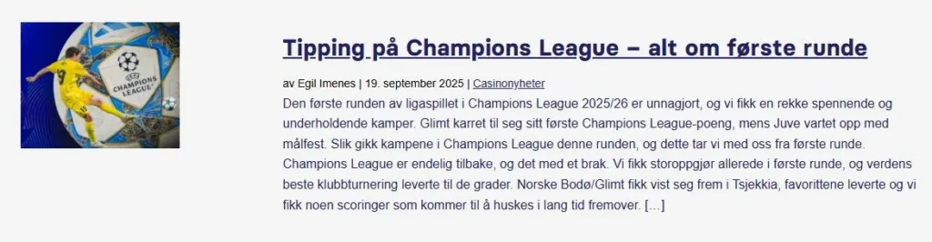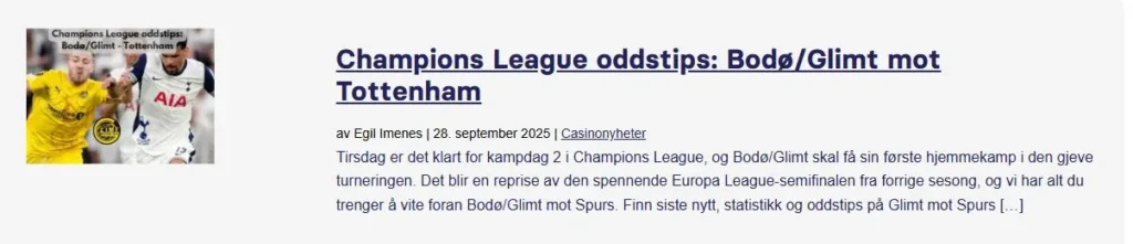 Bodø/Glimt står dermed med to poeng på to kamper, og møter Galatasaray i heksegryta i Tyrkia. Der står Glimt akkurat nå i 5,00 til å vinne hos Betista!