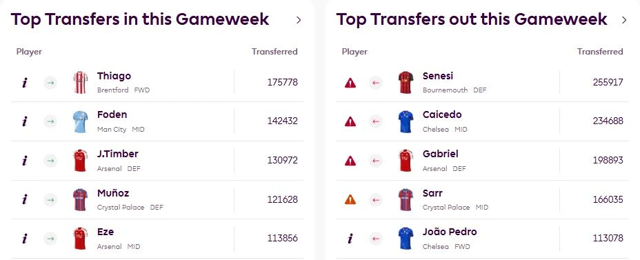 Hele 22,2 % av FPL-spillerne har valgt Igor Thiago (6,7) på laget sitt, og med fem mål på de tre siste kampene, har det lønnet seg. Men nå får Thiago en vanskelig kamp borte mot Arsenal, og kanskje er han ikke helt riktig valg akkurat denne uken. Vi har plukket ut de beste byttene for Thiago i rundt samme prisklasse (OBS: etter midtukekampen venter Spurs, Leeds og Wolves, så ikke selg ham enda).