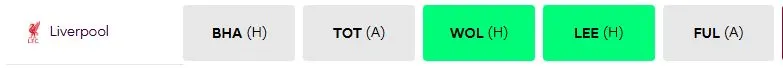 Liverpool har et fint program fremover, men spillerne har variert mye så langt. Derimot ser Ryan Gravenberch (5,6) som en potensiell fin løsning. Han spiller 90 minutter hver uke, har økt scoringsfrekvensen og er en svært billig løsning. Vi holder oss unna dyre Wirtz og Szoboszlai (som snart må sone for gule kort).