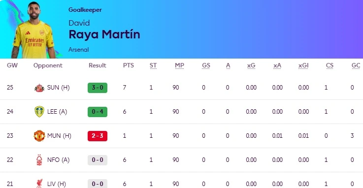 Arsenals David Raya (5,9) er spilleren med høyest sjanse til å holde nullen minst én gang i løpet av GW26. Med kamper mot både Brentford og Wolves, kan Raya være en potensiell gullgruve bakerst på det defensivt sikre Arsenal.