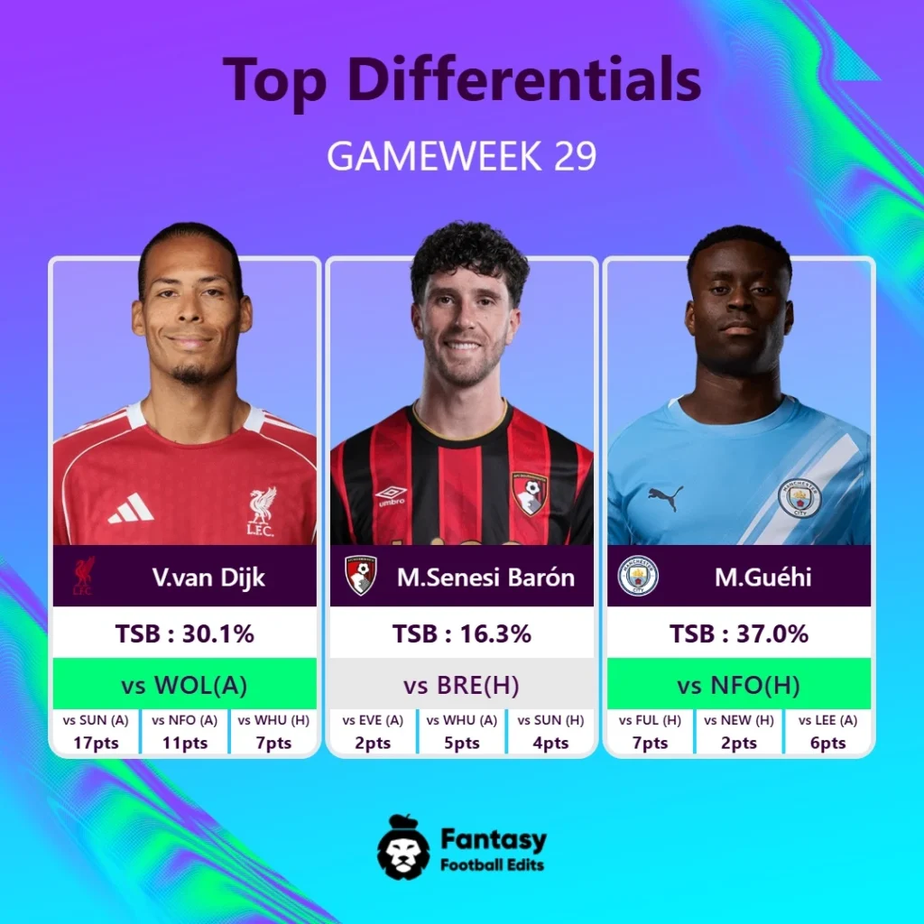 Virgil van Dijk har funnet formen sammen med lagkameratene i Liverpool. Det har gjort at nederlenderen nå er den tredje mest valgte forsvareren i FPL. Med 37 poeng på de 3 siste kampene er han i sin beste form denne sesongen og står også med 3 målpoeng på kampene. Nå møter de bunnlaget Wolves borte, som fort kan bety både holde nullen og potensielle målpoeng. Van Dijk er toppvalget foran GW29.