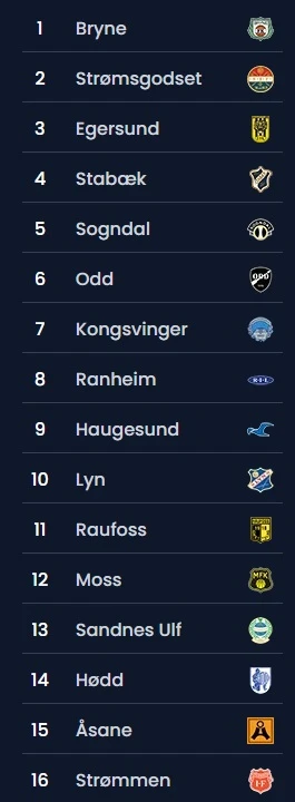 Strømmen: OBOS-ligaen tabelltips 2026 – 16. plass