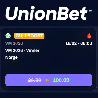 Det er sjelden vi ser at bookmakere går så hardt ut som det Unionbet gjør nå. Deres siste utspill er en oddsboost som virkelig får alle som er opptatt av verdi til å sperre opp øynene. De tilbyr nå hele 100.00 i odds på at Norge med Haaland & co. vinner fotball-VM til sommeren. For en skarve hundrelapp kan du holde drømmen ved like. Så blir det opp til hver enkelt å avgjøre hvilken drøm som rangeres høyest. Er det Norge som verdensmestere i fotball, eller en utbetaling på hele 10 000 kr som er din største drøm?