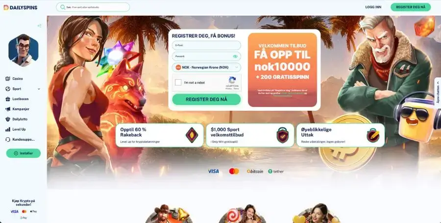 Casinoet aksepterer Bitcoin, Litecoin, USDT og tradisjonelle kort, og alle kryptoinnskudd krediteres «instant» uten ventetid. Unikt er også “Reality Check”‑klokken som måler spilletid i sanntid og varsler etter 60 minutter. Instant Casino er et perfekt valg for VPN‑brukere som vil kombinere raske transaksjoner med lave bonuskrav.