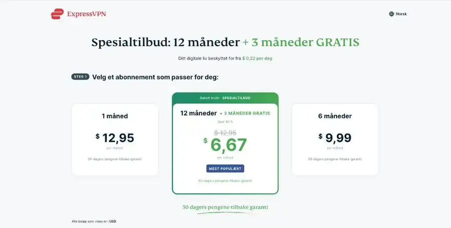 - Les bonusvilkårene; sjekk spesielt punktet om VPN‑bruk.