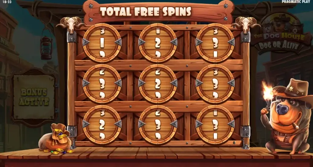 Av og til føles det nesten som om du er på tivoli, spesielt når du utløser gratisspinnrunden og musikken øker takta. Her får dessuten vår gode sheriffvenn muligheten til å teste skyteferdighetene sine når det skal avgjøres hvor mange spinn du får. Når gratisspinnrunden er over, avfyres det også skudd i en slags fanfare, til bjeffende jubel fra våre firebeinte venner på hjulene.