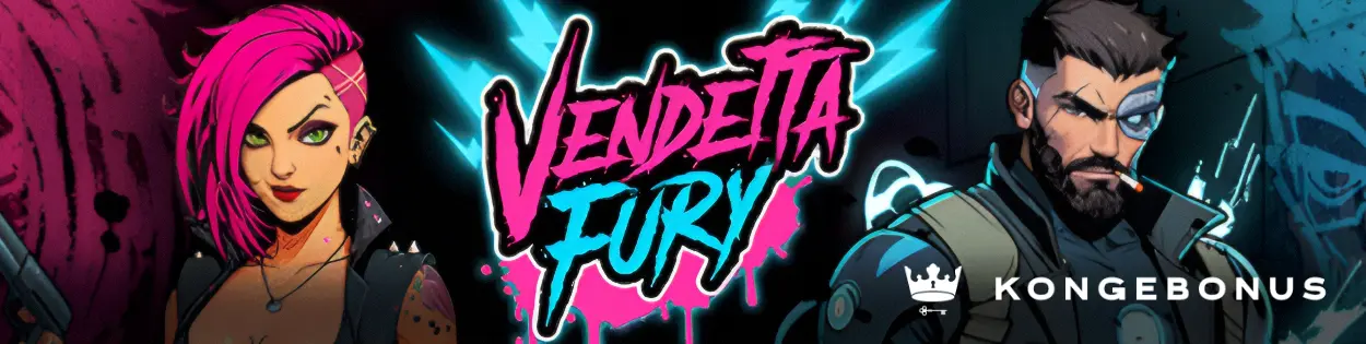 Vendetta Fury er en mørk og actionpreget videoautomat fra Degen Studios. Spillet ble lansert i mars 2026, og tar oss med til en dystopisk storby der rivalene Havoc og Vandal kjemper om kontrollen. Spillet kombinerer cyberpunktema med høy volatilitet, spennende bonusrunder og store multiplikatorer.